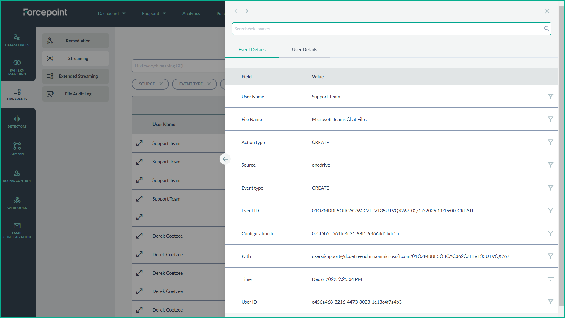 This section provides steps on how to enable real-time data streaming for a SharePoint Online connection and monitoring streaming events within the Forcepoint DSPM platform.