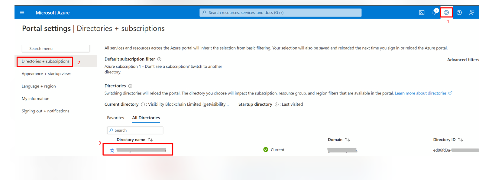 - If there are multiple tenants to choose from, use the Settings icon in the top menu to switch to the tenant in which needs to be registered to the application from the Directories +