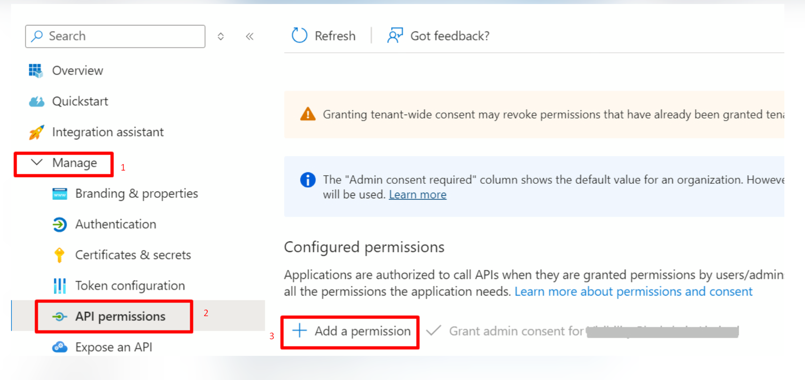 - Office 365 Management API ⇒ Application Permissions ⇒ ActivityFeed.Read