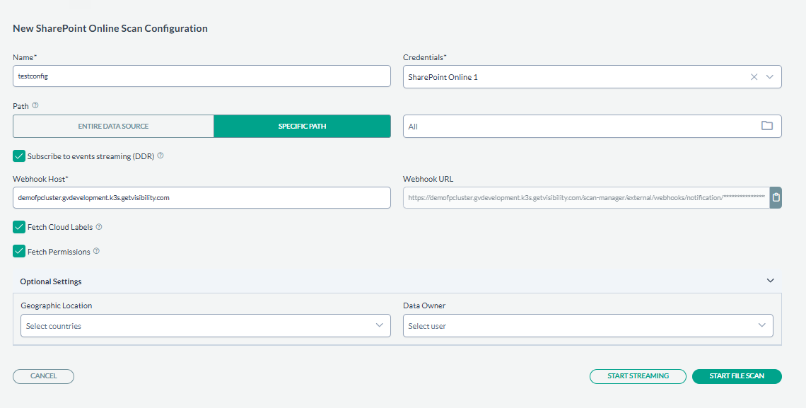 - After enabling Data Streaming, the system will automatically handle the subscription to SharePoint Onlineʼs real-time events. There is no need to manually configure