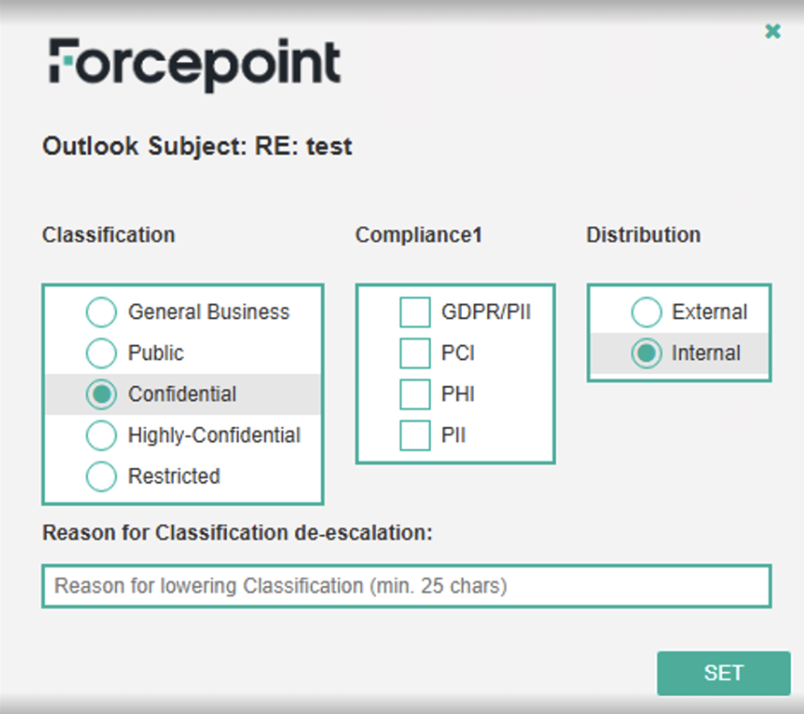 However, if the user wants to lower the classification, they should provide a reason in the text box provided. Justification feature will work for new emails.