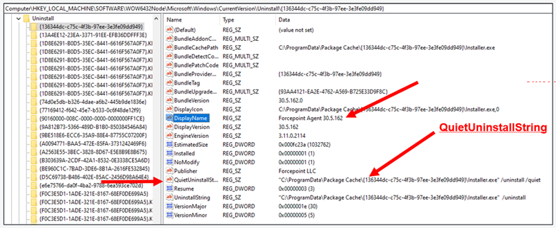 To uninstall silently, run the path found in the QuietUninstallString: C:\ProgramData\Package