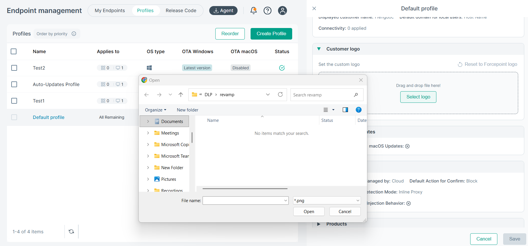 - Endpoint connectivity to FONE cloud: Control the endpoint connectivity to the Forcepoint Data Security Cloud | DLP cloud platform. Allows manual configuration of proxy settings for proxies that require authentication.