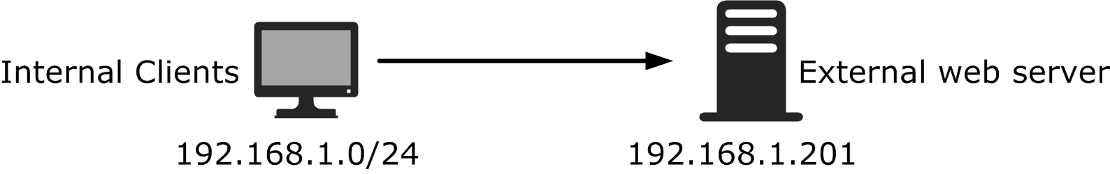 Clients in the internal network (192.168.1.0/24) contact the organization’s own public web server using the public IP address (203.0.113.140). The server’s external address is translated to an internal address (192.168.1.201) that belongs to the same internal network address space as the contacting clients. Source address translation is used to prevent the server replies to the client’s original IP address. Such replies would be routed directly within the local network instead of through the engine, and the connections do not work without the reverse NAT that the engine provides.