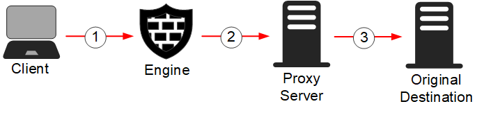 - Access rules or NAT rules in the Engine policy determine which connections are forwarded to the proxy service for inspection.