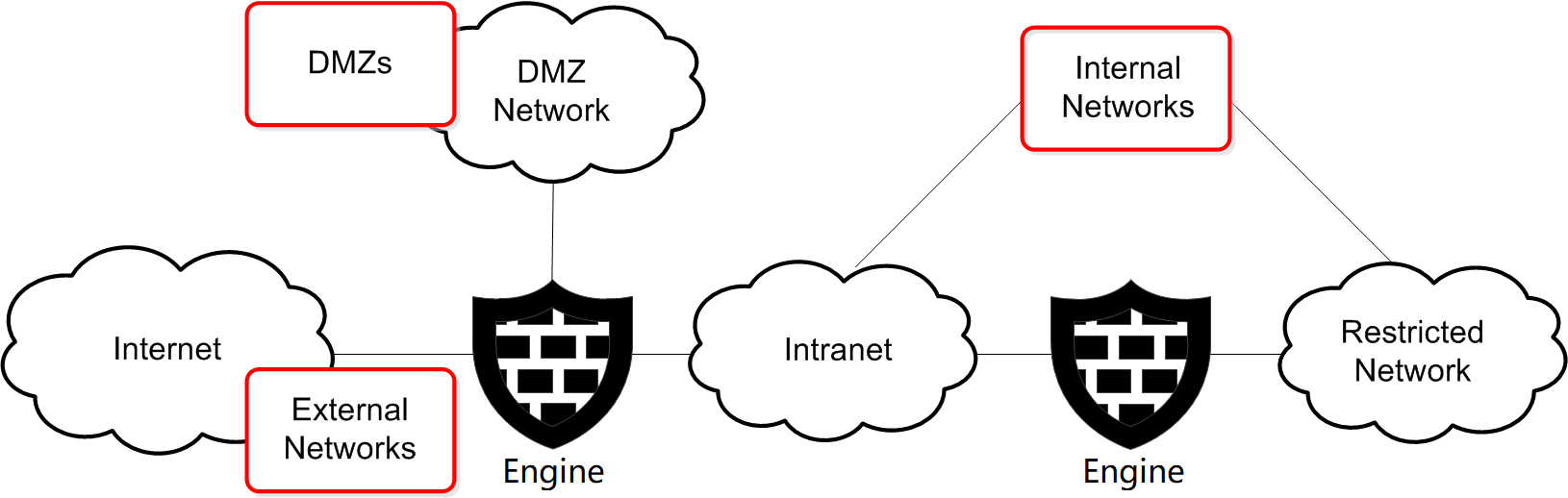 Engines separate the different networks by enforcing rules that control access from one network to another.