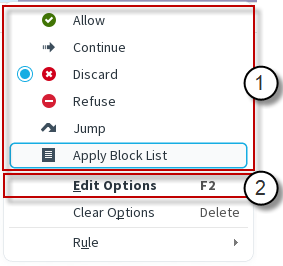 Figure: Right-click menu for the Action cell in an Access rule