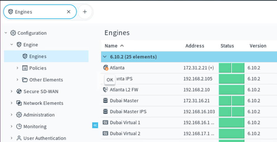 Configuration branch allows you to manage Security Engine elements and configure Security Engine policies. - The
