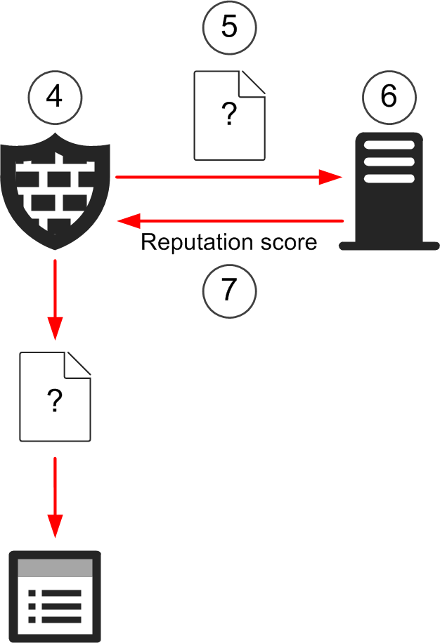 - When the analysis is complete, the sandbox server sends an updated file reputation to the Security Engine. The updated file reputation is
