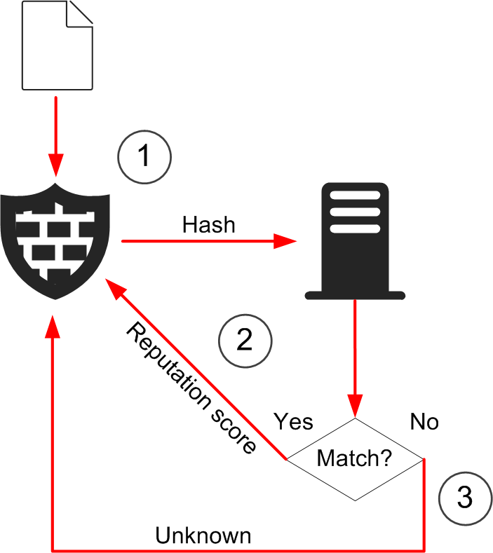 - If the hash of the file does not match a previously analyzed file, the sandbox server returns the Unknown file reputation for the file.
