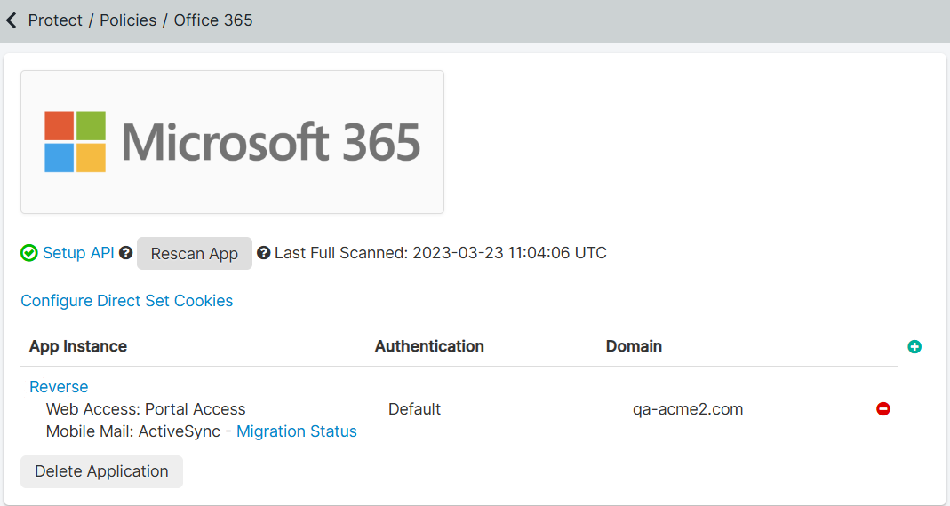 - Navigate back to the Policies > App Policies page and scroll down to the Microsoft 365 application.