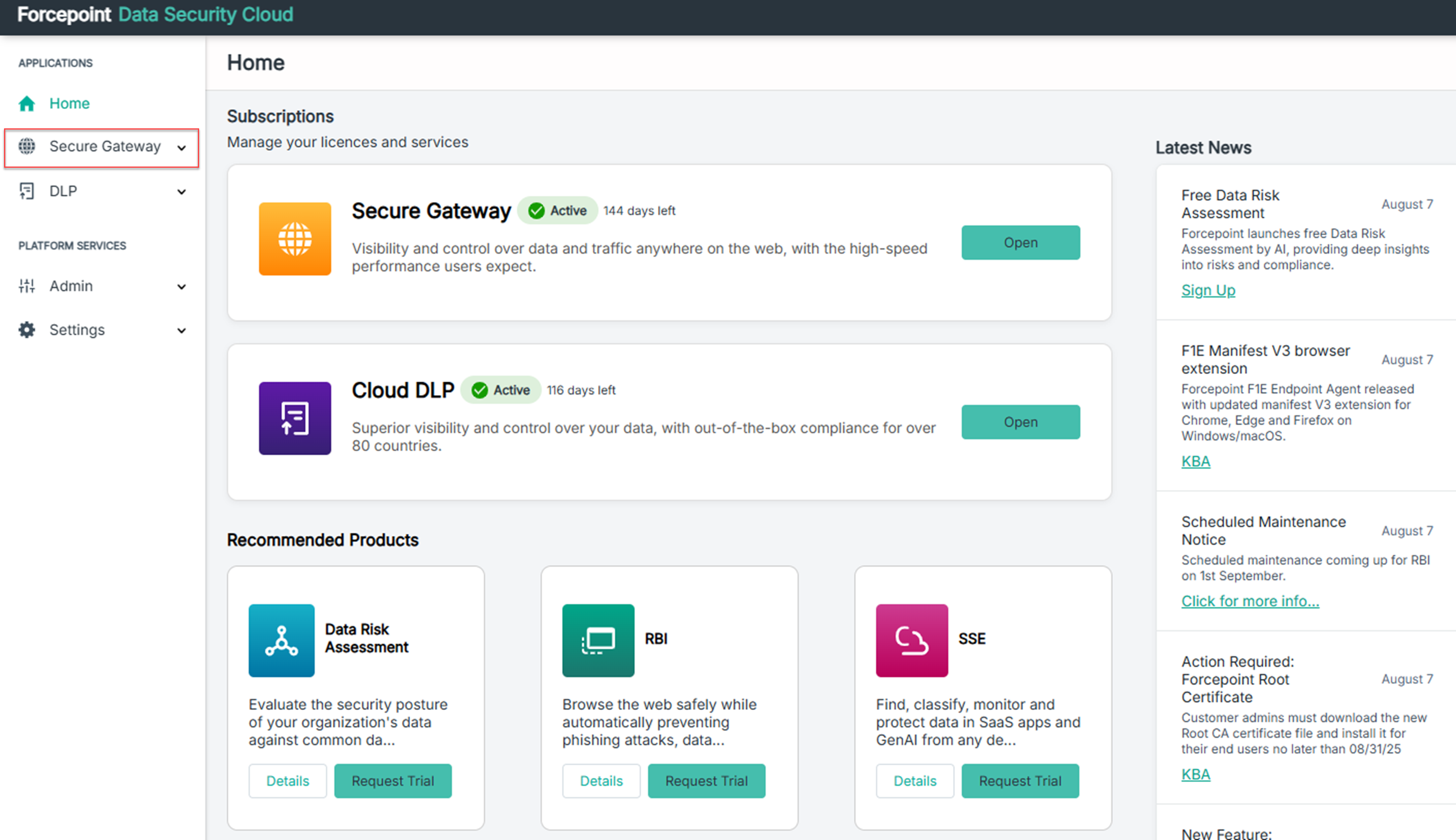 Secure Gateway provides visibility and control over data and traffic anywhere on the web, with the high-speed performance users expect. This integration will provide a seamless, unified experience for customers already using Web Security and other Forcepoint solutions via our platform.