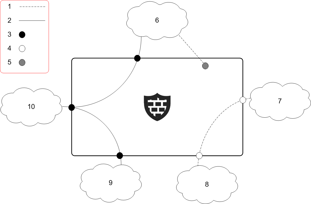 - External networks (the Internet) and DMZ (demilitarized zone) networks.
