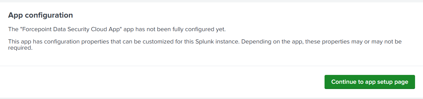 - Select Forcepoint Data Security Cloud App on the left column and then click Continue to app setup page on the next window that pops up to configure