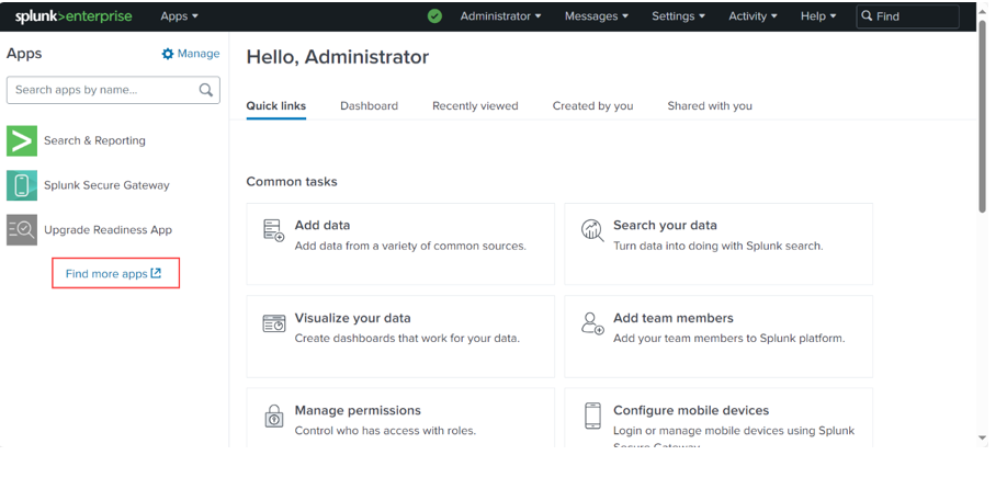 - On a new browser tab or window, login to your Splunk instance.