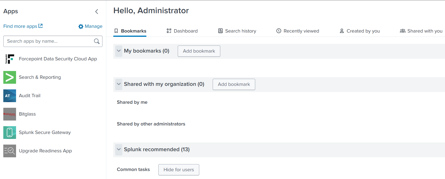 After successfully restarting the Splunk instance, you will now see the Forcepoint Data Security Cloud App on the left column.