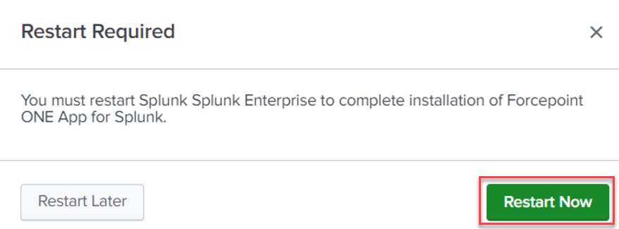 - Click Restart Now to restart the Splunk instance.