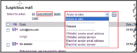 In some cases, users may be allowed to release a message or send a copy to themselves. If the email was quarantined because it contains a virus or offensive words, however, they would not be able to release a copy regardless of how the administrator has configured the service.