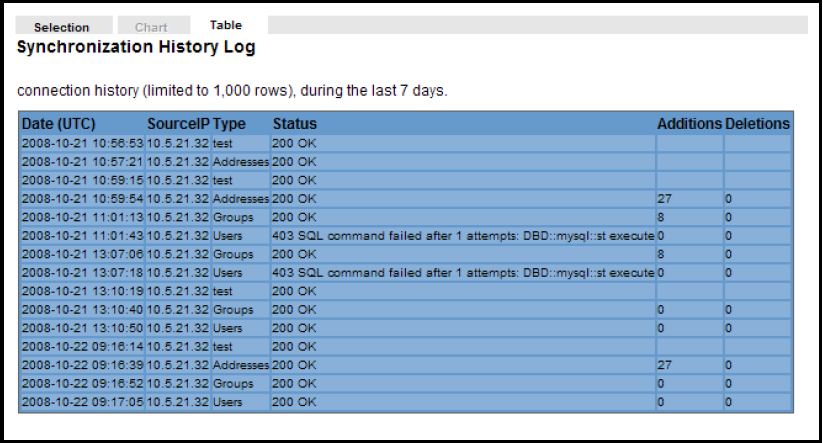 | Synchronization History Log |