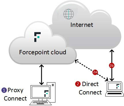 - In the first scenario, F1A or F1E operating in a proxy connect mode directs all web traffic via the cloud proxy. If the request is permitted, the proxy connects to the requested website and sends content back to the enduser client. (If the request is blocked, the user is shown a block page.)