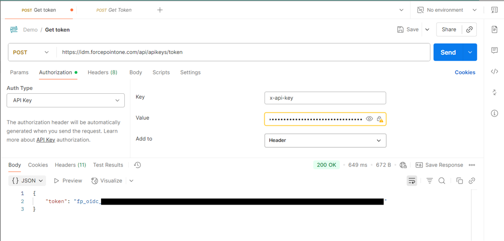 api-key-string generated in step a. Any API client can be used. The example bellow shows an example using Postman as well as cURL.